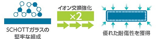 効果的なイオン交換技術を用いてさらに強化。最適化された化学強化を施すことで、