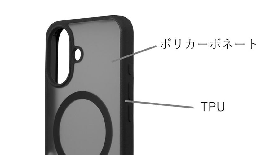 側面部分に100%リサイクルのTPUを使用した、環境にやさしいケースです。