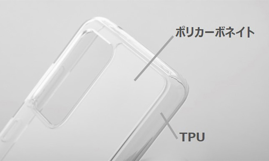側面部分に100%リサイクルのTPUを使用した、環境にやさしいケースです。
