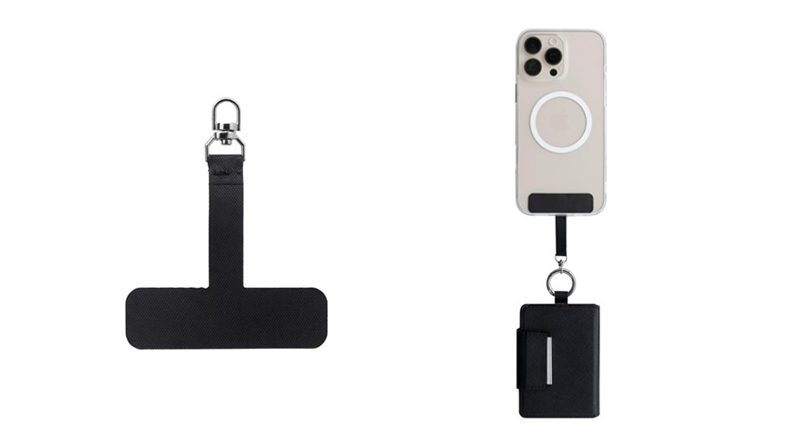 付属のストラップシートをケースに装着することで、ウォレットの落下を防止。
