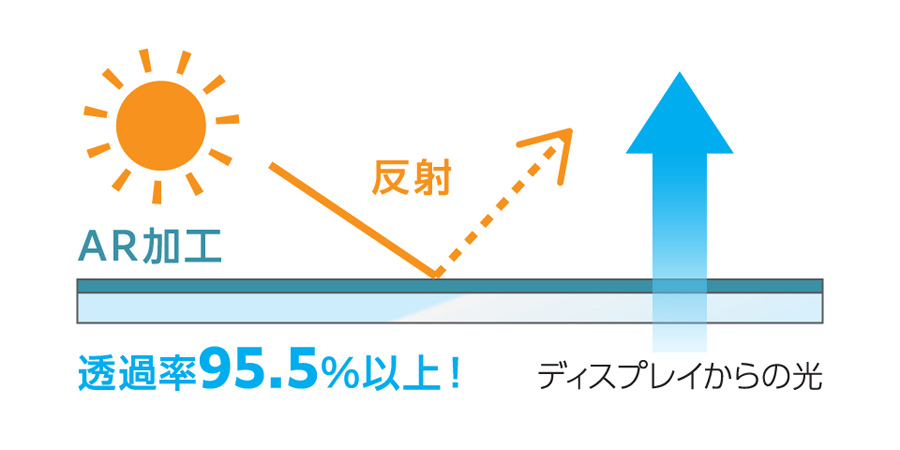 反射光を低減させ、太陽光の下でも見やすいガラスフィルムを実現。