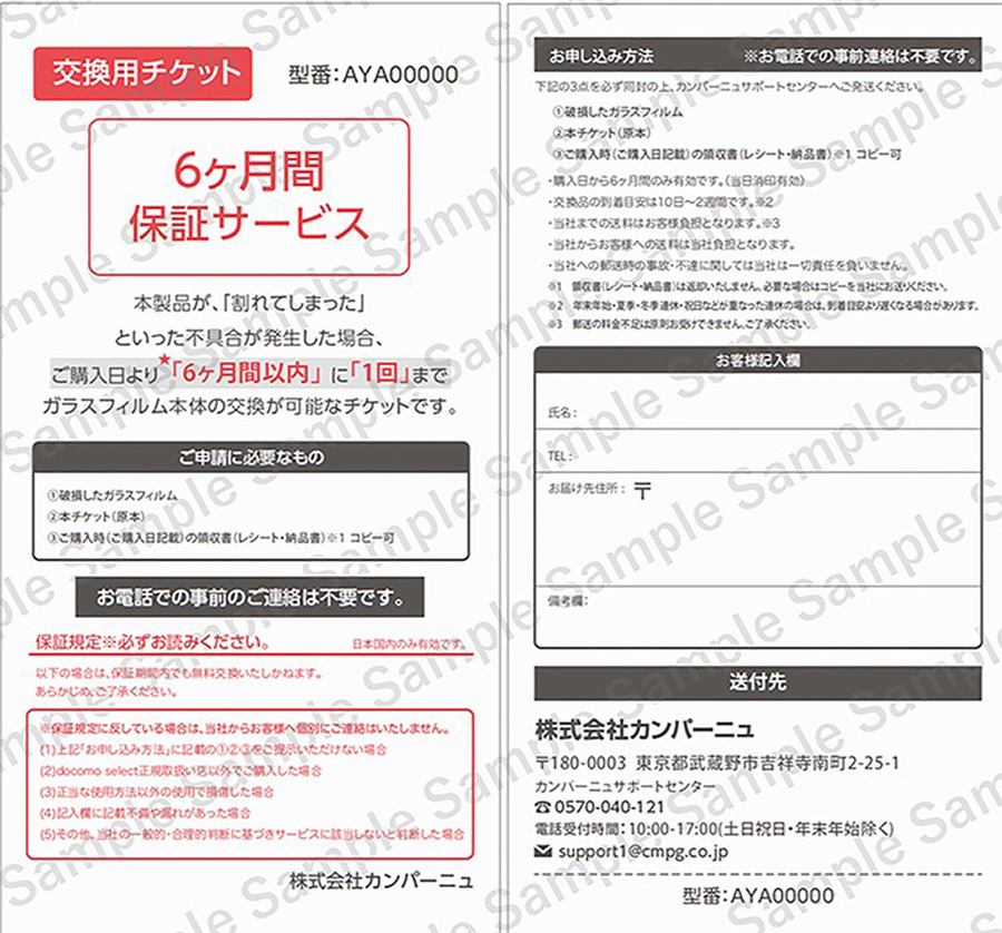 180日以内に本製品が破損してしまった場合は、新しいARガラスフィルムハイグレードと交換が可能です。