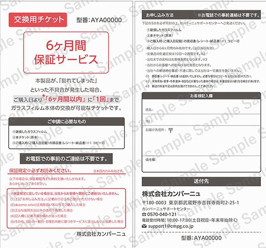 180日以内に本製品が破損してしまった場合は、新しいARガラスフィルムハイグレードと交換が可能です。